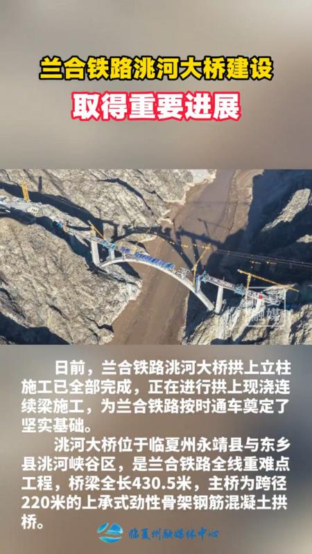 兰合铁路洮河大桥拱上立柱施工已全部完成为兰合铁路按时通车奠定坚实基础