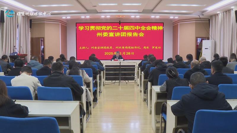 11月28日,全州水利系统举办学习贯彻党的二十届四中全会精神州委宣讲团报告会,推动全会精神在水利领域落地生根。