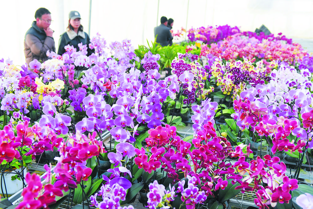 临夏县百益植物工厂内各种鲜花竞相绽放