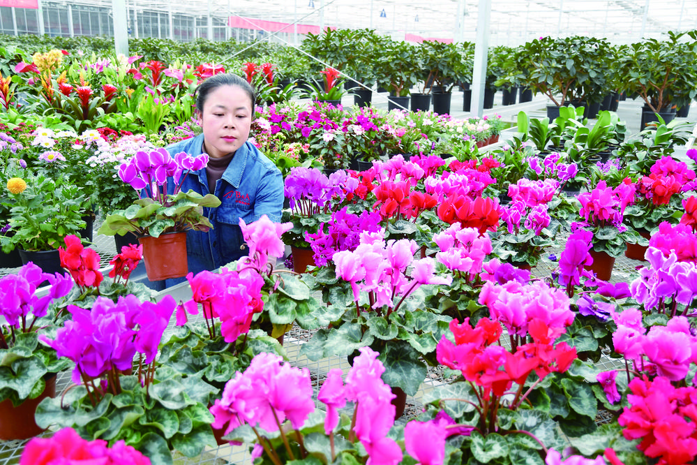 和政百益国际现代花卉产业园花卉竞相盛开吸引游人前来赏花选购