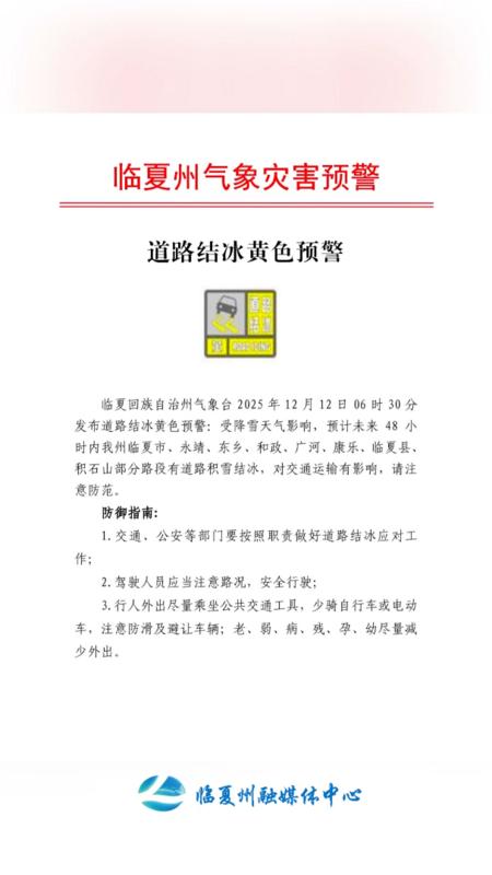 临夏州气象灾害预警 | 道路结冰黄色预警