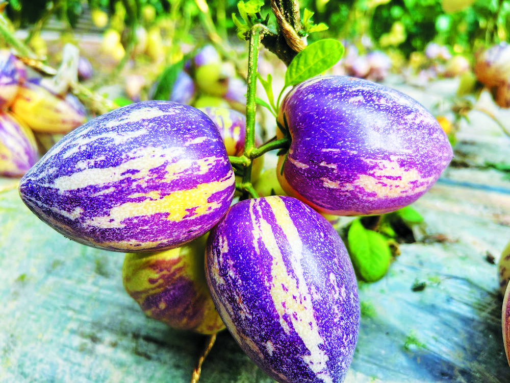 康乐县甘肃康晖现代农牧产业有限责任公司温室大棚内一颗颗圆润饱满的人参果挂满枝头