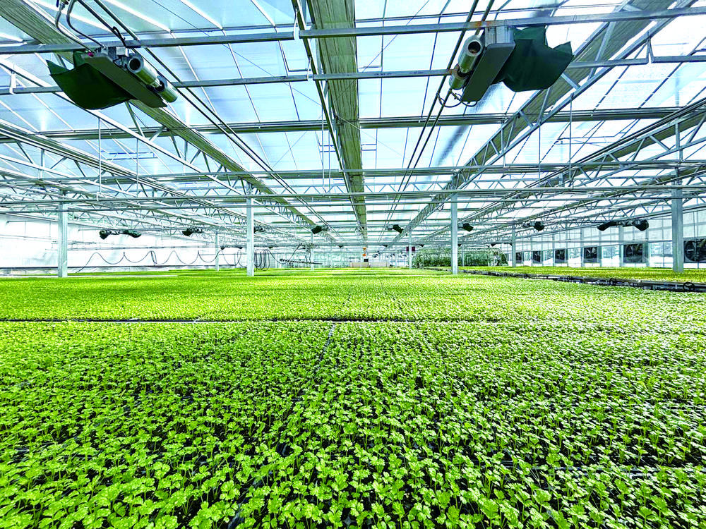 东乡县五家乡设施农业高原夏菜示范基地,育苗棚内菜苗长势正旺