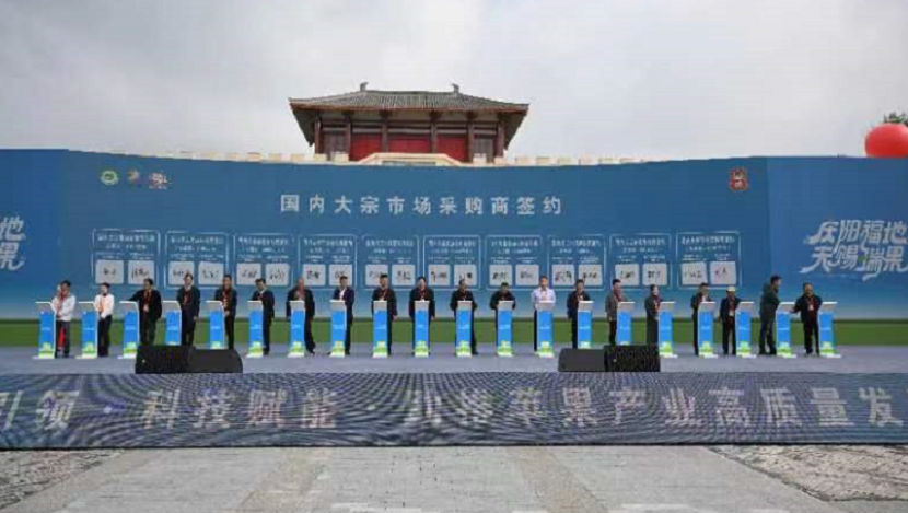 庆阳市委书记黄泽元指出,今天,苹果已经成为庆阳特色产业的第一大,成为庆阳农业品牌的第一大,也成为对农民做出贡献的第一大。举办此次盛会,是庆阳的大事、喜事,也是未来推动庆阳苹果产业发展的一个重大举措。黄泽元表示,希望通过此次盛会,能够携手共谋产业大发展、携手共建科技大园区、携手共创知名大品牌、携手构建商贸大体系,推动庆阳苹果市场占有率更高、品牌影响力更大、品牌效益更显,把福地庆阳的瑞果推广到全国、全世界,为庆阳发展注入更加强劲的动力。
