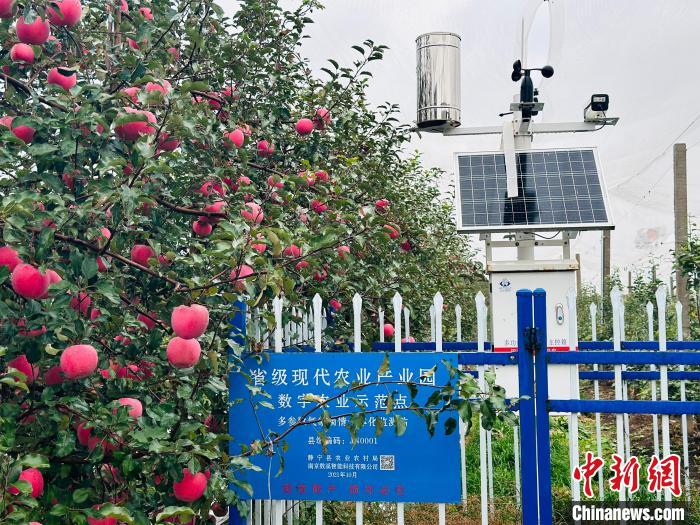 金秋十月,苹果成熟。静宁县的乡村,田间地头果香味四溢,红彤彤的果子挂满枝头。在当地一家大型苹果基地,基地外围栏上挂着“数字农业示范点”指示牌,不远处是苹果专属监测设备。