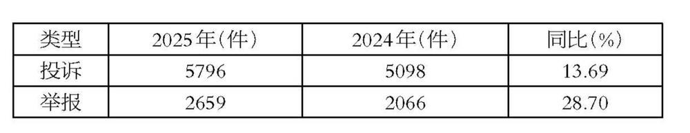 2025年度,临夏州在全国12315平台共接收各类投诉举报8455件,同比增长18.02%。其中,投诉5796件,同比增长13.69%,占投诉举报总量的68.55%;举报2659件,同比增长28.70%,占投诉举报总量的31.45%;全州市场监管部门共为消费者挽回经济损失46.51万元。