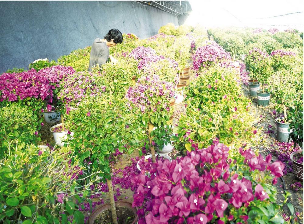 近年来,临夏市折桥镇通过“企业+基地+农户”模式,大力发展花卉产业,有效助力群众增收致富。图为大庄村群众在修剪花卉。 临夏融媒记者 梁永吉 摄...