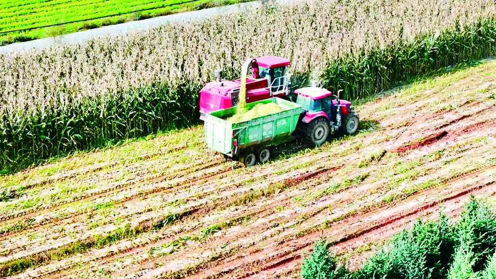 今年,临夏县共种植玉米17.59万亩,其中粮饲兼用型青贮玉米达4.7万亩,可产出青贮饲料12.9万吨,预计11月份全面完成青贮工作。图为新集镇青贮玉米种植基地收割现场。 临夏融媒记者 马博...