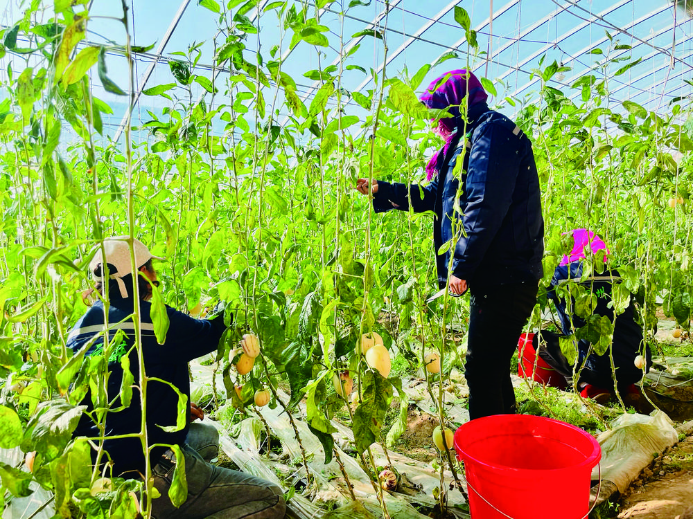 寒冬时节,积石山县关家川乡冰川夏蔬菜种植基地的温室大棚内,一排排人参果植株整齐排列,翠绿的枝叶间挂满了形态饱满、色泽鲜亮的果实,长势喜人。 临夏融媒记者 马尚龙 摄...